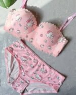 Home Bra Panty Set Double Padded Hello Kity Pushup Bra Penty Set